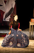 Robes que Rosemonde revêt à chaque changement de tableau et qui rythment la chronologie de leur existence. Chaque robe correspond à une période et évoque une pièce d’Edmond Rostand pour montrer l’importance du rôle de Rosemonde dans le travail de son mari. C ‘est elle qui porte les pièces.