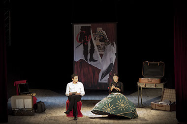 Sur scène quelques valises qui représentent le voyage dans la mémoire des personnages. Ces valises contiennent des objets symboliques de leur existence mais aussi des robes.
