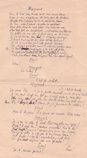 "Ma mie, je suis venu vous écrire dans le fameux salon de lecture… C’est deux heures, personne au casino ; un grand silence. Là, en face de moi le joli coin de canapé où on était si bien. Je vous adore, mon trésor.