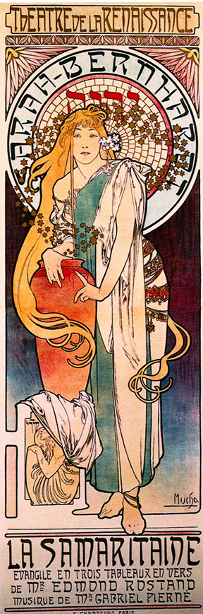 1897 : 14 avril : On crée sur les planches du même théâtre, La Samaritaine, Évangile en trois tableaux et en vers, pour le Vendredi Saint. La pièce, qui retranscrit assez fidèlement un épisode de l’Évangile de Jean, l’arrivée de Jésus en Samarie et la conversion d’une pécheresse, est sans doute la pièce où Rostand se fait le plus mystique, où sa pensée tend le plus vers l’idéal. La Samaritaine est la clé de l’œuvre rostandienne. Parallèlement aux répétitions, il se met à l’écriture de Cyrano de Bergerac.